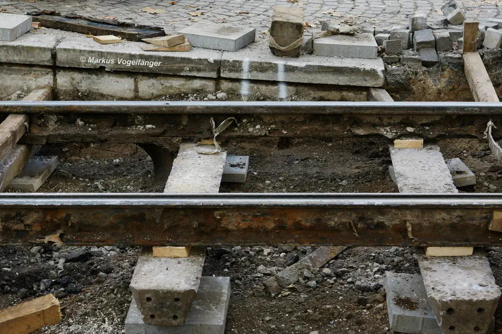 die alten Gleise kurz vor der Haltestelle "Rudolfplatz" (Richtung Moltkestraße) am 24.10.2013.