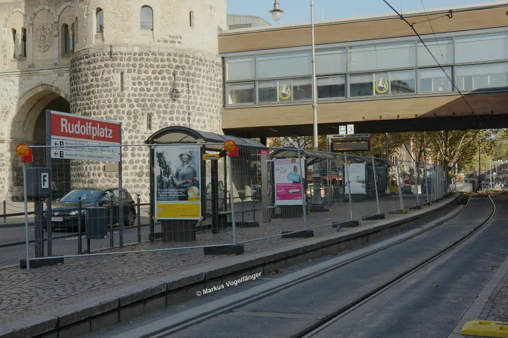 Die Haltestelle "Rudolfplatz" (Richtung Moltkestraße) ist zur Zeit wegen Gleisbauarbeiten gesperrt.