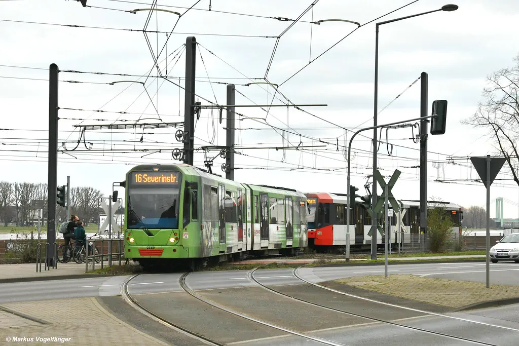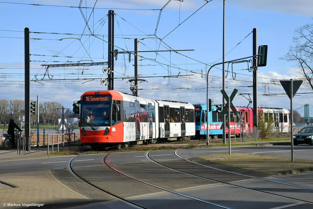Wagen 5156 wurde in die aktuellen KVB-Farben lackiert